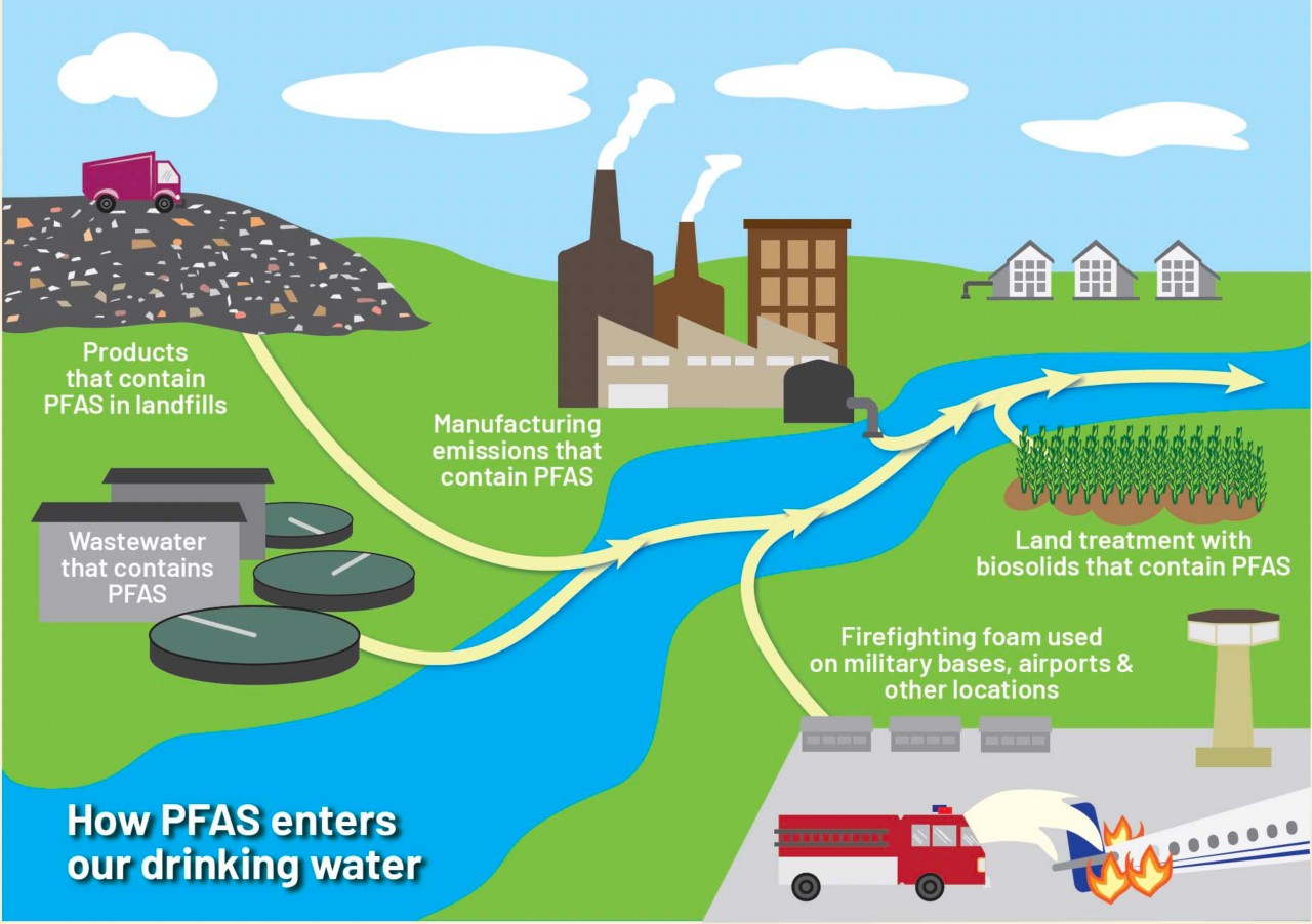- PFAS: These contaminants enter water supplies through industrial runoff, firefighting foams, and various consumer products. They can travel long distances and accumulate in water systems.