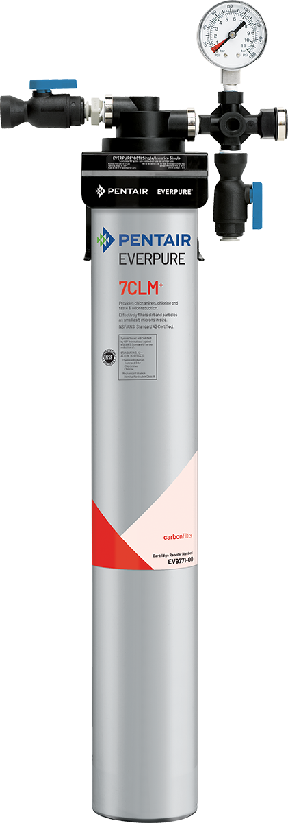 Exceed the capacity and flow requirements to deliver consistent, quality water with the Everpure 7CLM+chloramine reduction filtration systems. Ideal for fountain and ice machine applications, the exclusive carbon block media effectively reduces chloramines and chlorine taste & odors and efficiently filters particles down to 5 microns. These distinct elements help minimize costly equipment downtime and maintenance and deliver an improved beverage experience for you and your customers.